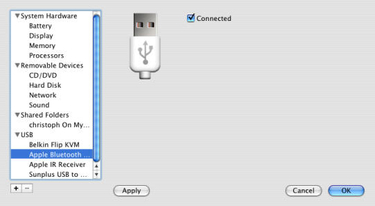Wählen Sie im Menü 'Virtual Machine' 'Settings', klicken auf 'Bluetooth' und aktivieren 'Enabled':