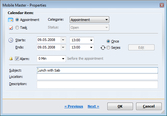 In addition to synchronizing and transferring data, Mobile Master is also a management program. All data on the phone, whether contact, Organizer, or multimedia data can be edited in different views - either directly in the table view or in the dedicated entry masks.